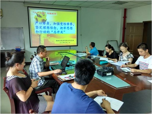 8月28日下午,检测中心党支部就 “三严三实”——严以修身专题组织了学习讨论。各党员踊跃参与讨论,与实际工作相结合,周艳书记要求党员不论在工作时间还是业余时间,都应做到严以律己,这样才能保证对群众起到感染的作用;赵建科主任强调作为党员应当从思想和能力上均要走在前面,带领和引导群众去遵守制度,提高工作效率。其他党员还提出设备的使用应当从自身做起,严格按照操作规程;实验室的环境维护党员也应当一马当先,起到带头的作用。