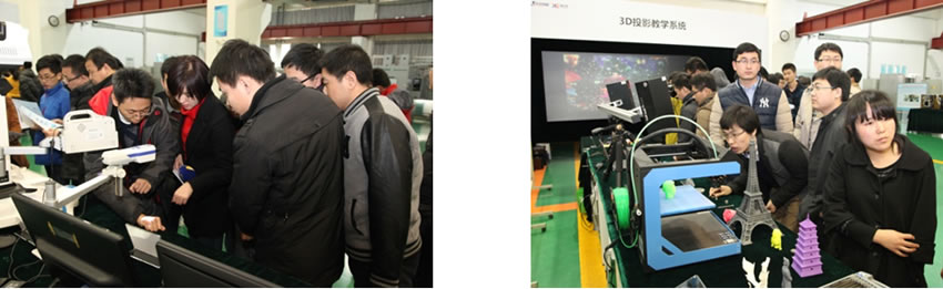 参观者在听取介绍的同时将产品拿到手中仔细观看