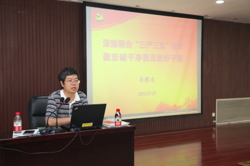 为贯彻落实中央、中国科学院及西安分院关于开展“三严三实”专题教育的部署要求,7月21日下午,西安光机所党委书记、副所长马彩文同志以《深刻领会“三严三实”要求,做忠诚干净担当的好干部》为题,向全所机关中层以上领导、研究室主任及支部书记讲专题党课,所领导、党委委员、纪委委员、副处级以上领导干部及支部书记50余人参加。